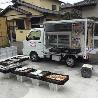 決められた場所や空き地で地域の方々へイオンの商品を販売するお仕事。